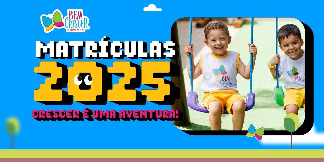 Começou a temporada de matrículas do Bem Crescer! 🚀 Venha embarcar com a gente numa jornada cheia de aprendizado, diversão e descobertas para o seu pequeno crescer com tudo!