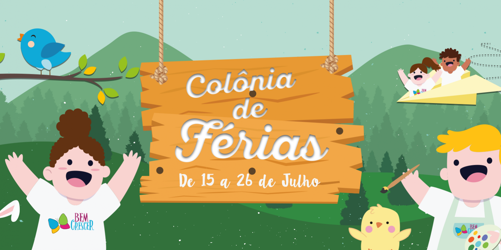 A Colônia de Férias é destinada para pequenos até quatro (4) anos de idade e crianças que não estejam matriculadas no Bem Crescer também poderão participar. Não é demais?! Essa é uma excelente oportunidade de conhecer as maravilhas da nossa escola e ainda garantir a diversão da criançada.